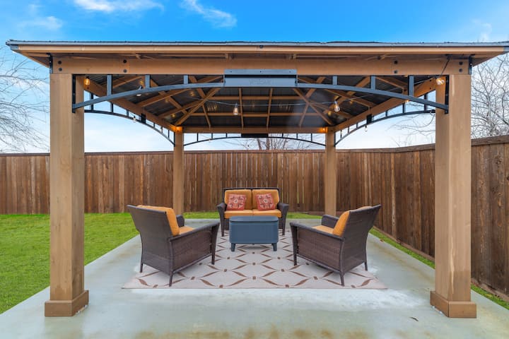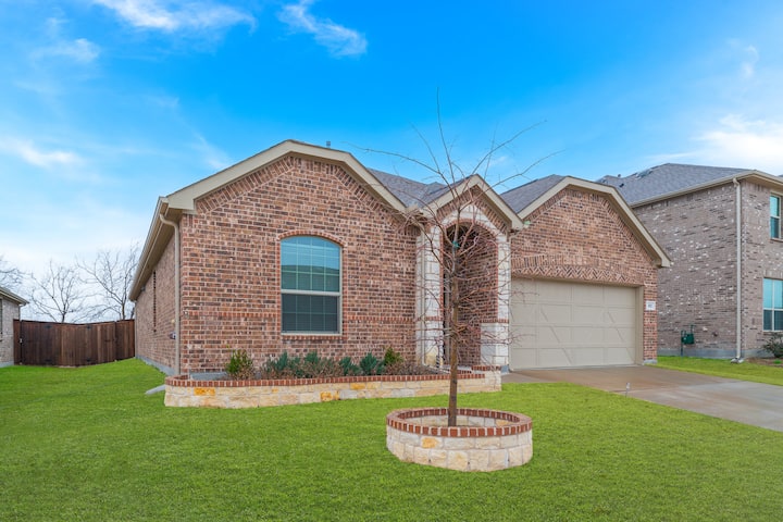 **Nuovo annuncio** Ti diamo il benvenuto nella tua vacanza perfetta! In cerca di una vacanza tranquilla o di un rifugio per famiglie, il nostro spazio progettato con cura offre un soggiorno confortevole e rilassante. Il cortile privato e un patio coperto sono perfetti per un caffè mattutino o un drink serale. Che tu sia in cerca di avventura, relax o entrambe le cose, Ventura Retreat offre un soggiorno con tutto questo e non solo. Esplora luoghi vicini come Lake Lewisville, Little Elm Beach, PGA Golf Course o divertiti a pescare sulla rampa della barca a soli 10 minuti di distanza.