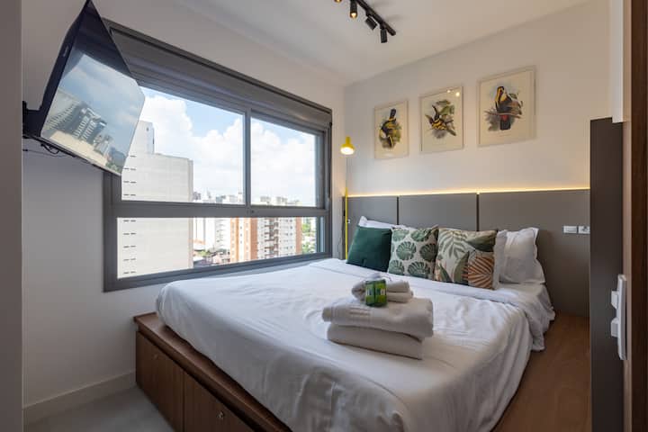 Mi chiamo Debora, sono CEO di 360 Suites. Gestiamo appartamenti arredati in edifici residenziali e le nostre proprietà sono distribuite in 30 località a San Paolo. Saremo felici di riceverli, ti aspettiamo!