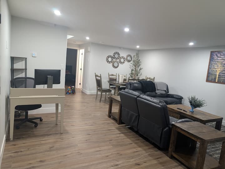 Nuovo seminterrato con 2 letti, ingresso laterale, spazio di lavoro dedicato