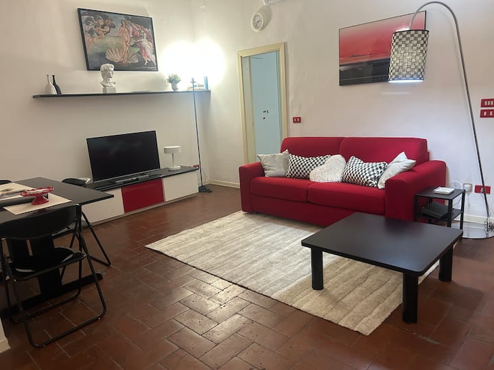 Centro storico. Raggiungi tutto a piedi. Di fronte alla Galleria dell’Accademia, dove si trova il David. A pochi passi dalla Cattedrale e da Ponte Vecchio. Due vere camere da letto , soggiorno, cucina separata e bagno indipendente. Secondo piano. Palazzo storico.