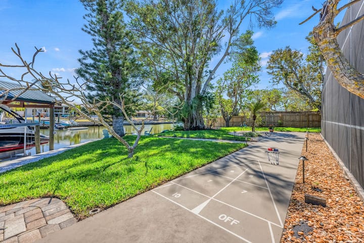 Waters Edge splende davvero con i suoi eccezionali spazi esterni. Esci e rilassati nella piscina privata riscaldata schermata, perfetta per nuotare tutto l'anno, o goditi un momento di tranquillità nella zona salotto fronte canale con vista sull'acqua. Per un divertimento ancora maggiore, lo shuffleboard offrirà ore di competizione amichevole per gli ospiti di tutte le età.
