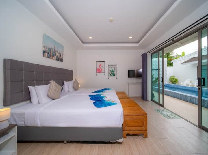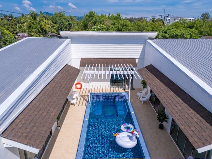 Spaziosa villa con 4 camere da letto, piscina privata con acqua salata, soggiorno e cucina completa. Pulizia giornaliera da parte della governante inclusa. A soli 15 minuti da Patong o dal centro città. Circondato da centri commerciali come Central, Robinson e Big C, super comodo! Parcheggio gratuito e telecamere di sicurezza nelle aree comuni. Il manager della villa è disponibile per prenotazioni di tour, noleggio auto e altro ancora. Tranquillo, sicuro e perfetto per il tuo soggiorno a Phuket!