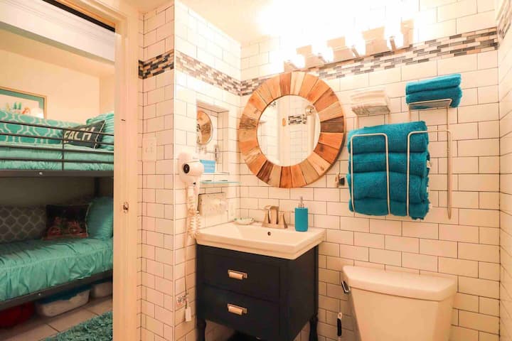 Ti diamo il benvenuto nel tuo rifugio sulla spiaggia di Galveston! A pochi passi dalla spiaggia, questo accogliente appartamento con 1 camera da letto può ospitare fino a 6 persone con un letto matrimoniale, un letto a castello e un divano letto estraibile. Rilassati sul balcone privato con vista mozzafiato sul Golfo o approfitta dell'angolo cottura ben attrezzato per preparare pasti facili. Situato vicino a negozi, ristoranti e luoghi di intrattenimento, è il rifugio ideale per famiglie o coppie. Situato in posizione comoda, proprio accanto all'ascensore e alle scale, per un facile accesso.