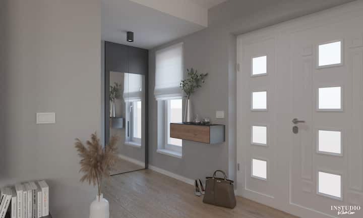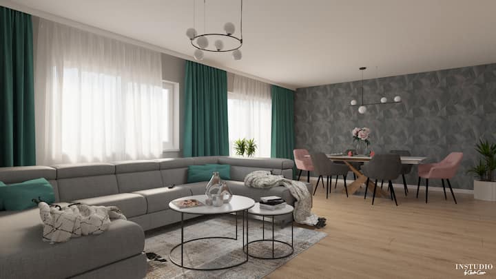 Casa moderna e spaziosa con grande TV a schermo piatto