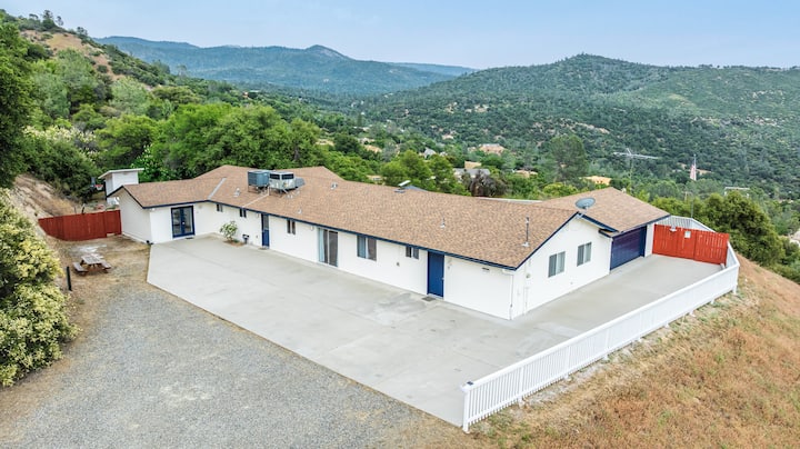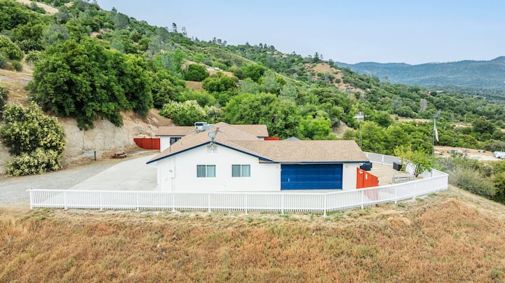 Rifugiati nel nostro spazioso rifugio privato per famiglie con 6 camere da letto e 4 bagni su 4 ettari di terreno tranquillo, a soli 10 minuti dall'ingresso del Parco Nazionale di Yosemite e dal Lago Bass! A 5 minuti dai negozi di Oakhurst. Goditi un ampio parcheggio. Rilassati con stile in un ambiente dal fascino autentico e dagli interni moderni, con una generosa pianta aperta e un grande cortile perfetto per divertirsi. Rilassati nella vasca idromassaggio o divertiti con i giochi in loco. Rimani connesso con Internet ad alta velocità.