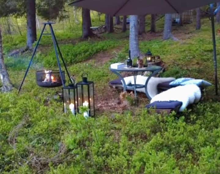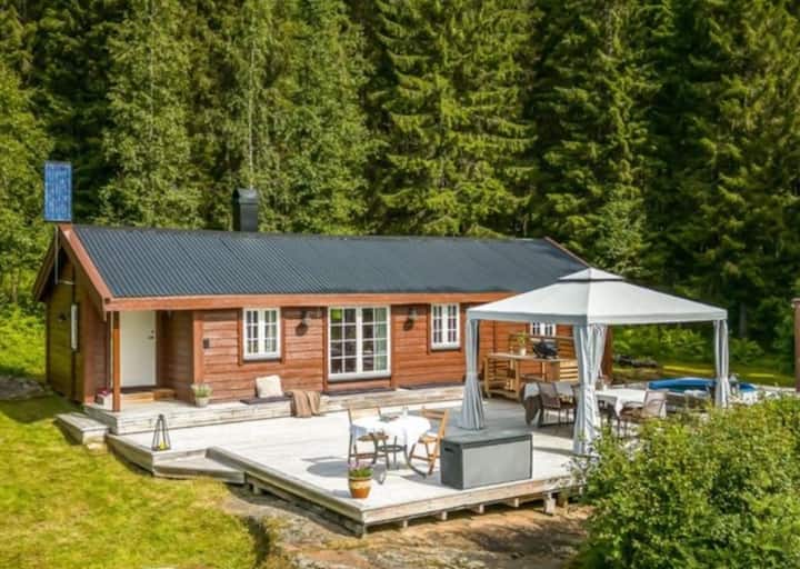 Chalet con vasca da bagno a legna "Trolltunhytta"