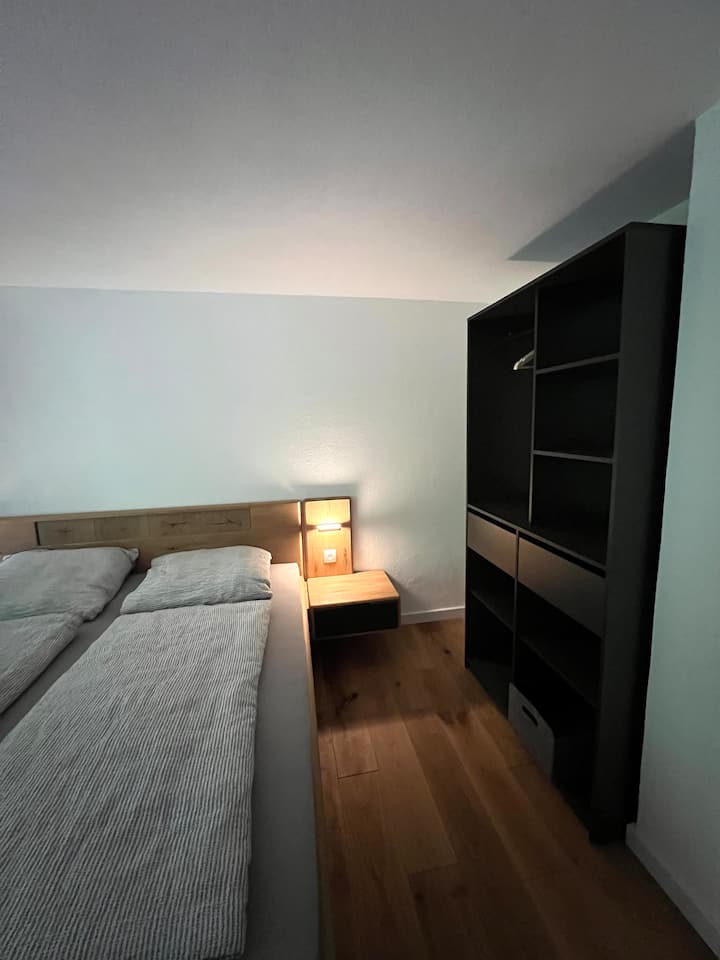 L'appartamento offre due ampie camere da letto, ciascuna dotata di letti in legno massello di alta qualità (180x200 cm) che garantiscono notti riposanti. La zona giorno e pranzo a pianta aperta colpisce per la vista pittoresca sulle montagne circostanti. Qui potrete rilassarvi sul grande divano o sulla comoda poltrona.