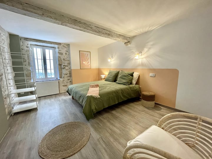 Ideale per un soggiorno lungo, una piccola famiglia o due amici, questa suite mescola fascino, spazio e serenità.