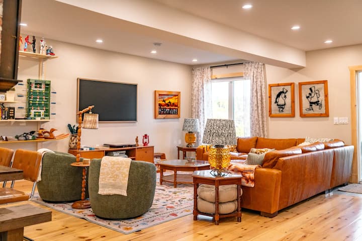 Immerso nelle dolci colline della Wentworth Valley, a solo 1 minuto da Ski Wentworth, The Rosebowl Retreat è uno chalet di 6 camere da letto recentemente ristrutturato (con 2 letti a castello queen-size!), curato nei minimi dettagli per ospitare grandi gruppi e ritiri privati; fornisce una base rilassante per recuperare dopo una giornata di avventura. Rigenerati nella nostra grande sauna e vasca idromassaggio, condividi storie e risate intorno al falò, oppure organizza una cena per tutta la famiglia: qualunque sia la tua avventura, rendila memorabile al Rosebowl Retreat!