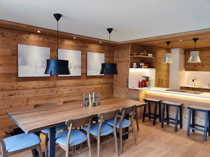 Residence-chalet con PISCINA e SPA! DIRETTAMENTE SULLE PISTE! Un alto livello di comfort nel nostro appartamento di 123 mq completamente attrezzato per 10 ospiti con una splendida vista panoramica sulla valle di Belleville. Esposizione sud-ovest. Servizi inclusi: lenzuola e asciugamani, pulizia finale, 2 posti auto. WIFI + accesso gratuito all'area benessere con piscina interna riscaldata, sauna, hammam, jacuzzi, sala fitness e trattamenti (su prenotazione e a pagamento).