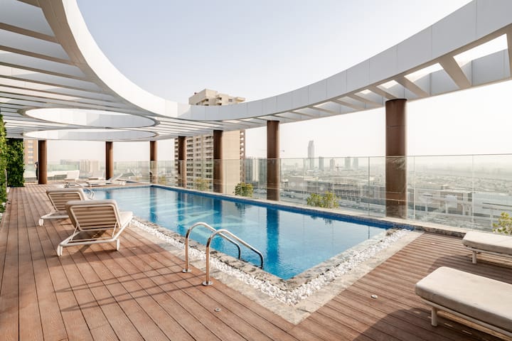 Lusso 1BR JVC | Piscina e balcone sul tetto