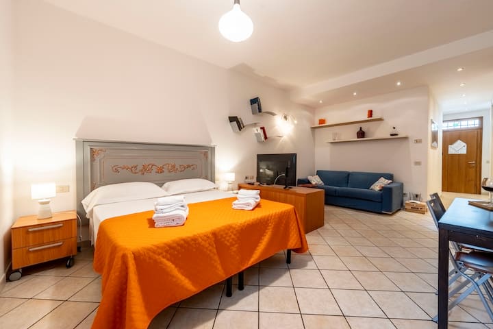 L’alloggio è costituito da 2 appartamenti adiacenti, ognuno con ingresso indipendente. Un appartamento è ideale per 4 ospiti essendo composto da un ampio soggiorno con zona cottura, 2 camere da letto doppie e un bagno; questo alloggio è ideale per 4 ospiti e fruibile fino a 6 grazie a un comodo divano letto nel soggiorno. L'appartamento adiacente è un ampio monolocale con angolo cottura e bagno; questo alloggio è ideale per 2 ospiti e fruibile fino a 4 grazie a un comodo divano letto matrimoniale.