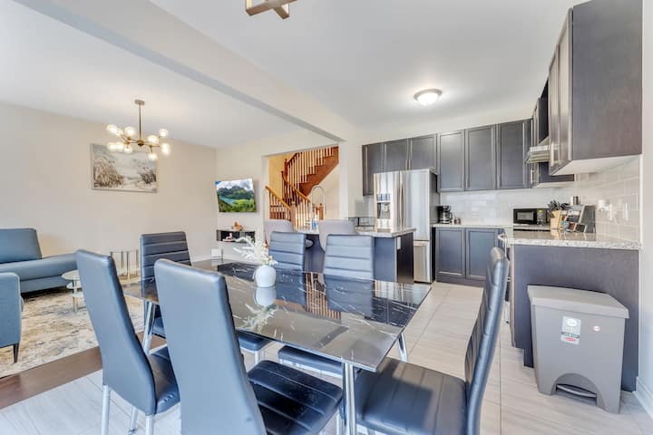 Questa lussuosa casa 4BR/2.5B vanta 2 zone giorno, una con un accogliente caminetto, un'area ufficio, smart TV e arredi opulenti. Vivi la tranquillità in un quartiere tranquillo, pur rimanendo vicino ai servizi della città. La moderna cucina e le ampie zone soggiorno offrono lo sfondo perfetto per l'intrattenimento o il relax. Camere da letto confortevoli e bagni ben arredati garantiscono un soggiorno delizioso. Esci nel patio per rilassarti o crogiolati al sole.