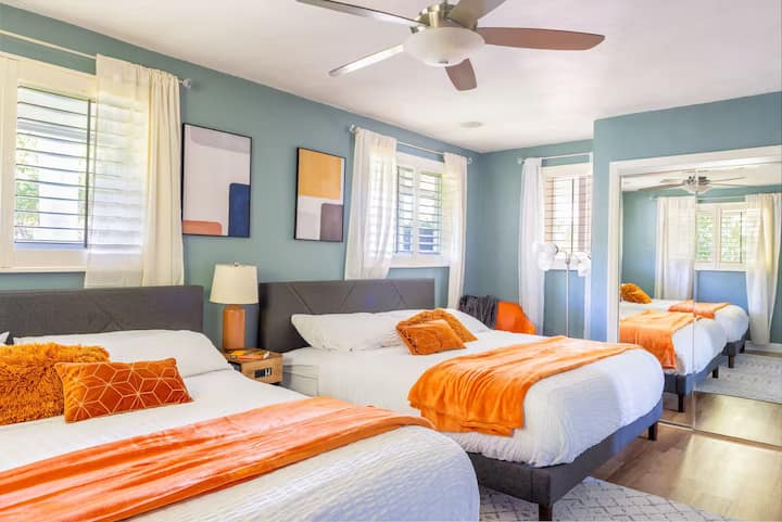 👉 Nota importante: questa prenotazione è per una camera da letto privata all'interno di una casa condivisa, non per l'intera casa. Avrai il tuo bagno privato, mentre tutte le aree comuni (cucina, soggiorno, cortile, piscina, ecc.) sono condivise con altri ospiti. Stai prenotando la camera arancione.
