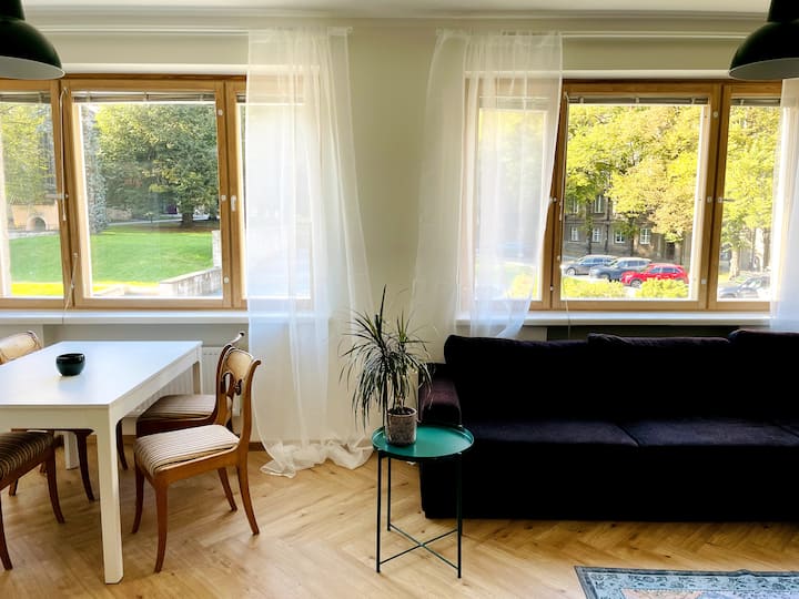 Benvenuti a Harju 1, la storica casa dello scrittore! A soli 3 minuti a piedi dalla Piazza della Città Vecchia (famoso Mercatino di Natale), questo appartamento completamente attrezzato e spazioso (78 m2) offre una vista tranquilla e alberata sulla Città Vecchia. Goditi la vicinanza a tutte le attrazioni, con parcheggio privato gratuito, e rilassati nella vasca da bagno dopo aver esplorato le strade acciottolate. Questo appartamento appartiene alla nostra famiglia da oltre 60 anni: siamo lieti di condividere questo spazio significativo con te.
