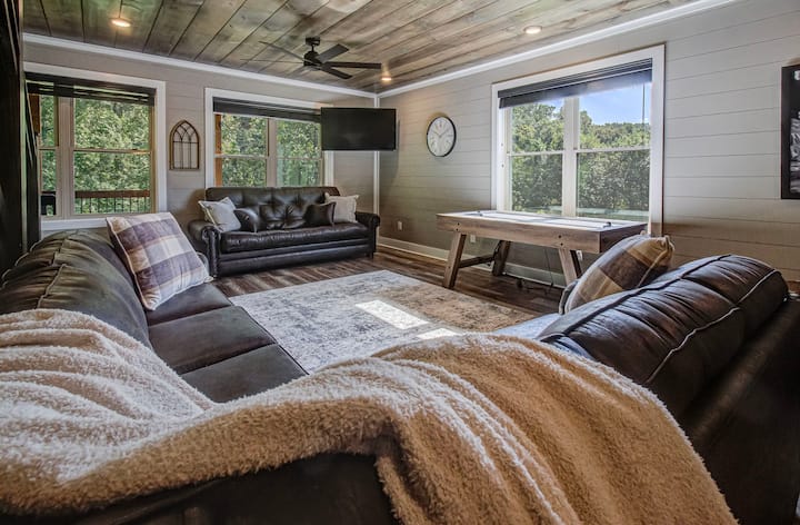 Ti diamo il benvenuto a "Hilltop Haven", dove il lusso moderno incontra il fascino di Smoky Mountain per la migliore esperienza di vacanza della tua famiglia. Nascosta in un luogo tranquillo, la nostra baita con 2 camere da letto (8 posti letto) è circondata da una vegetazione lussureggiante, che crea la sensazione di pace di essere in alto tra le cime degli alberi. Vasca idromassaggio ★privata ★Barbecue ★Soggiorno con caminetto elettrico Sala ★giochi In-unit ★Lavatrice e asciugatrice ★Cucina completamente attrezzata ★Ottima POSIZIONE!