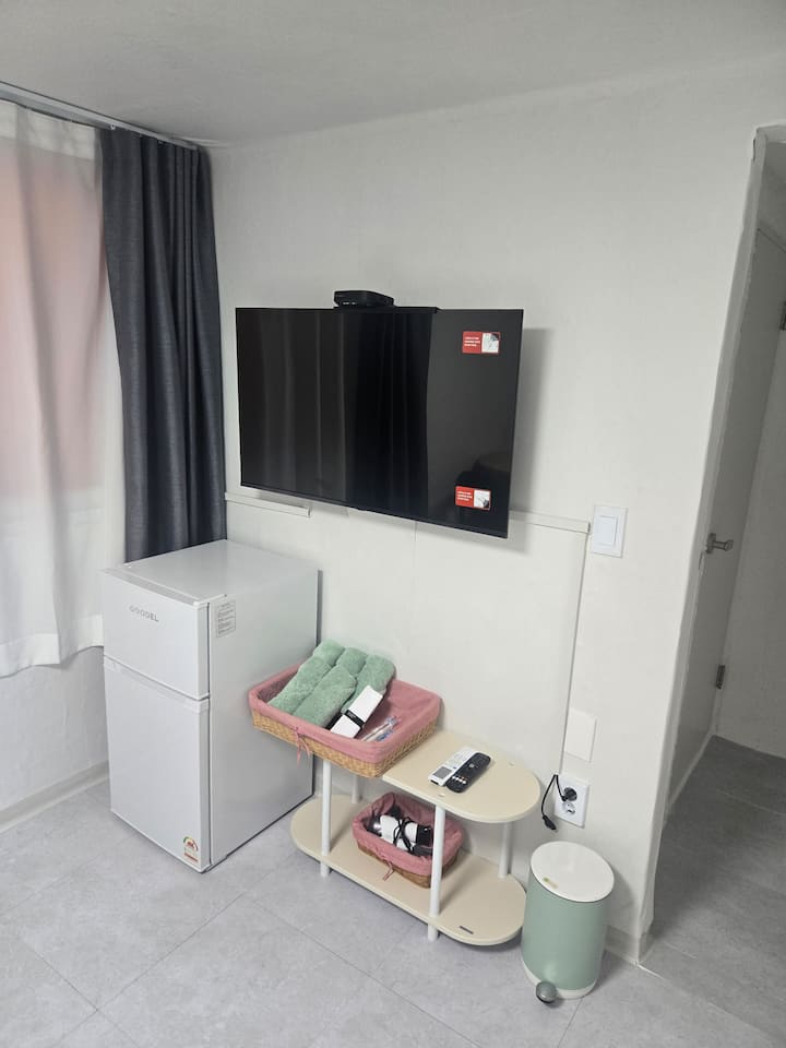 * Cucina condivisa (depuratore d'acqua, forno a microonde, induzione, pentola, coltello, tagliere, bicchiere da soju