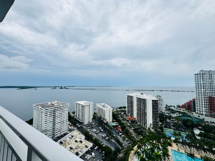 Vista sulla baia e sullo skyline in un alloggio con 2 camere da letto a Brickell
