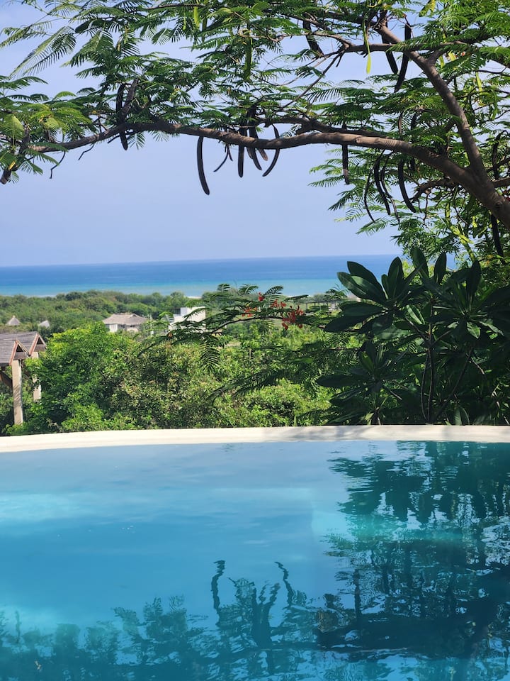 Le aree comuni includono una piscina a sfioro con vista sulla montagna e sull'oceano, tavoli all'aperto nel patio e spazi perfetti per rilassarsi, leggere o condividere. Offriamo anche lezioni di immersione (su prenotazione) e possiamo aiutarti a organizzare esperienze locali come il rilascio delle tartarughe, tour delle mangrovie o laboratori artigianali.