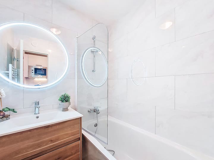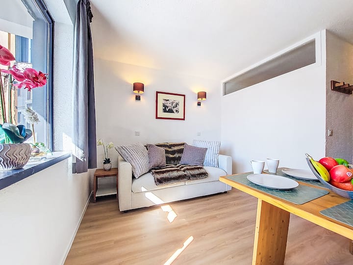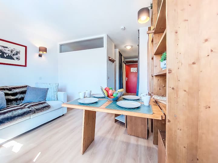 Monolocale di 22 m² al 6° piano, posizione esposta a sud. Completamente ristrutturato nel 2025, arredi pratici e confortevoli: soggiorno/sala da pranzo con 1 divano letto matrimoniale (1 x 140 cm, lunghezza 190 cm), angolo pranzo e TV (schermo piatto), riscaldamento elettrico. Alcova con 1 x 2 letti a castello (80 cm, lunghezza 190 cm). Ingresso con angolo cucina.