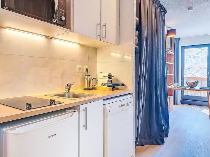 Residence "Les Olympiades", 7 piani. Nel centro di Val Thorens, nella località, in posizione centrale, trafficata, soleggiata nel quartiere residenziale, a 100 m dal comprensorio sciistico. Nel complesso: ascensore, ripostiglio per gli sci. In inverno: per favore prendi le catene da neve. Parcheggio pubblico a 50 m, extra. Stazione di ricarica elettrica. Negozio, alimentari, supermercato, centro commerciale, ristorante 5 m, bar 50 m, panetteria, caffetteria 5 m, zona pedonale 2 m, fermata bus "navette gratuit" 200 m, piscina all'aperto 50 m. Centro sportivo 10 m, funivia 150 m, seggiovia 50 m, cabinovia 10 m, piste 50 m, noleggio sci 5 m, fermata skibus 150 m, scuola di sci 100 m, pista di pattinaggio 500 m. Attrazioni nelle vicinanze: Centre Sportif 100 m. Le famose regioni sciistiche sono facilmente raggiungibili: domaine des 3 Vallées 100 m, Val Thorens – Orelle 100 m. I laghi famosi sono facilmente raggiungibili: Lac du Lou 800 m, Lac du Menuires 600 m. Nota bene: intrattenimento nella stagione. Adatto a famiglie, attrezzatura per bambini su richiesta (extra). Il proprietario non accetta gruppi di giovani. Ski bus (gratuito). In caso di buone condizioni di neve, la casa è accessibile con gli sci. L'appartamento si trova in una zona a traffico limitato. È possibile prenotare alloggi aggiuntivi.