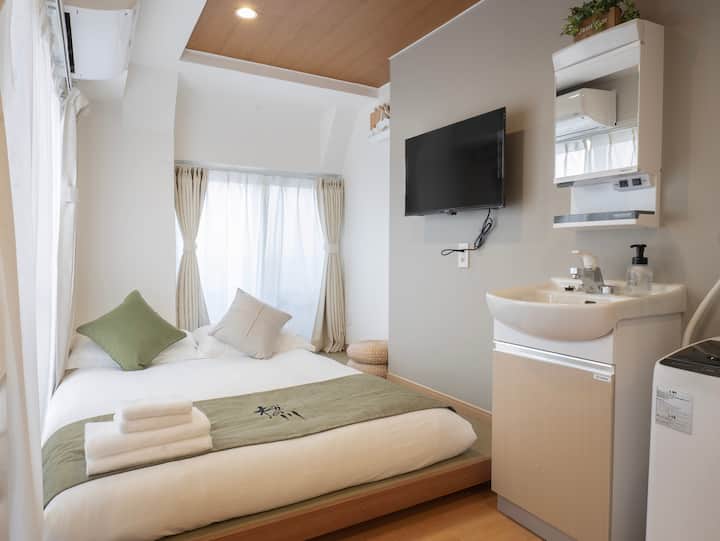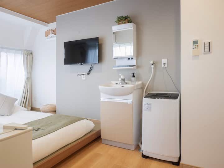 Completamente attrezzata: cucina, frigorifero, lavatrice, microonde, pentola per il riso, bollitore elettrico, asciugacapelli, stoviglie, tazze, bacchette, piatti da pranzo, ecc.