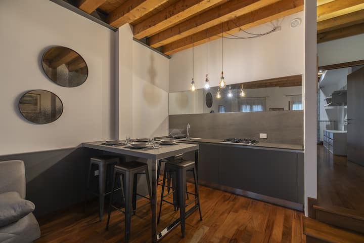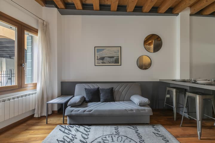 Accogliente e luminoso appartamento situato nel cuore di Treviso, a pochi passi da una delle zone più affascinanti della città: la storica Pescheria e il vivace Quartiere Latino.