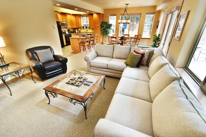 Cross Creek 100 è una bella e molto spaziosa casa a schiera con 4 camere da letto e 5 bagni, situata nel cuore di Frisco, vicino a Main Street. Unità finale piena di finestre e luce. Cucina in granito a lastre completamente attrezzata con isola centrale per un meraviglioso spazio di preparazione. Sedili del bar della cucina 3. Tavolo da pranzo rotondo circondato da finestre con posti a sedere 8. Caminetto a gas River rock, comodi posti a sedere e grande schermo piatto in salotto. WiFi gratuito, TV via cavo e giochi da tavolo. Un garage per auto più il parcheggio della superficie. Il patio si affaccia sul ruscello e sulla foresta. Grande terrazza esposta a sud al piano superiore con vista sulle montagne. Lavatrice e asciugatrice nell'unità. Questa casa a schiera attrezzata offre ampio spazio per rilassarsi, cenare e intrattenere.