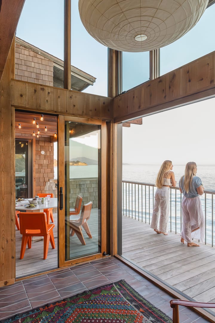 • Angolo salotto: una seconda zona soggiorno tranquilla con un divano letto sotto un classico lampadario Noguchi, perfetto per leggere o rilassarsi ascoltando il suono delle onde, insieme a due sedie girevoli che potrebbero essere il posto migliore della casa in cui sedersi.
