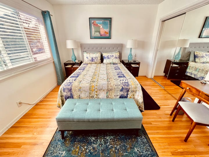 Letto privato/bagno/scrivania a metà secolo a Los Feliz