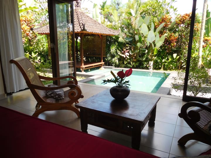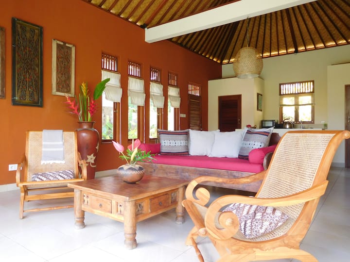 Entrambi lavoriamo in modo indipendente nel settore della stampa e, naturalmente, amiamo viaggiare e scoprire nuovi luoghi. Ti auguro di goderti Bali e Ubud tanto quanto noi, e ovviamente sei il benvenuto nella nostra casa!