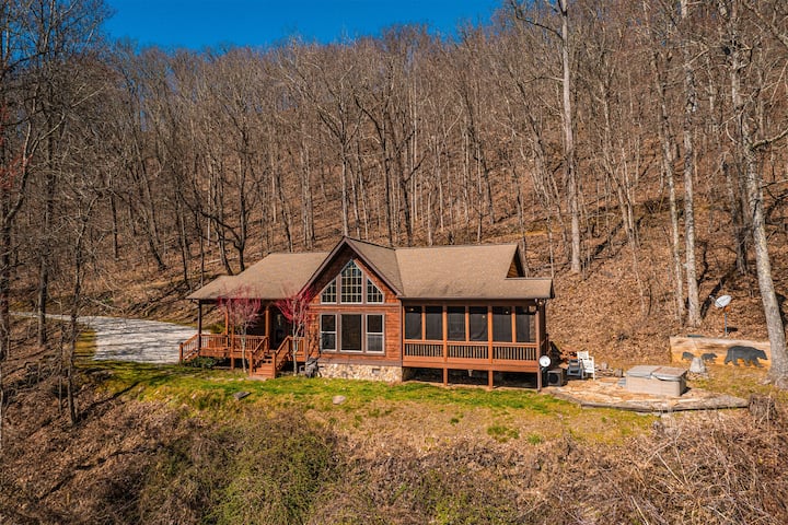 Vacanza al Millstone Lodge! Vista mozzafiato, vasca idromassaggio e focolare personalizzato. Baita moderna con soffitti a volta, pavimenti in legno e viste mozzafiato. Appartamento appartato ma accogliente, con 2 camere da letto, 2 bagni e sala video. Perfetto per una vacanza indimenticabile!