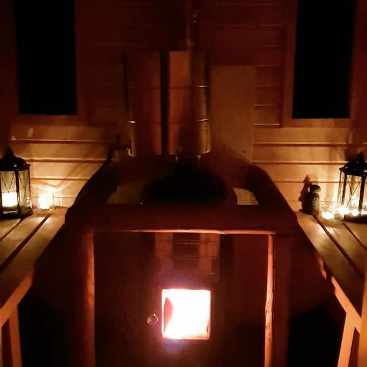 La baita dispone anche di una barca a remi in estate. La barca viene utilizzata a proprio rischio, porta con te l'attrezzatura di sicurezza e hai le dimensioni giuste. La sauna a botte e la vasca idromassaggio della baita funzionano con legna da ardere. La vasca idromassaggio è chiusa in inverno, ma la sauna a botte può essere utilizzata tutto l'anno.