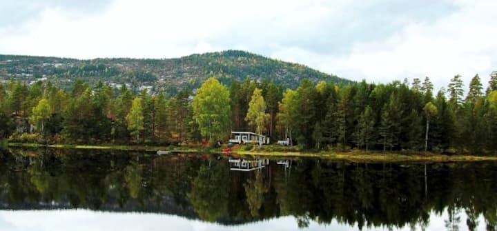 Accogliente chalet nella natura proprio accanto a Hodnekilen (fiume Otra). La baita dispone di sauna a botte, barca a remi, possibilità di pesca e vasca idromassaggio affittabili nei mesi estivi