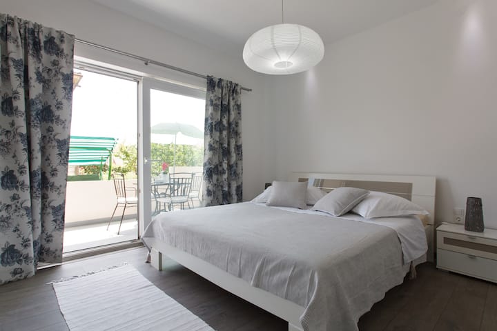 Appartamento fresco e moderno con giardino verde e barbecue