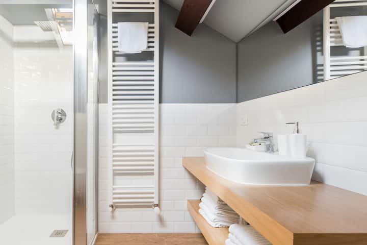 Rilassati con questi tre servizi: doccia con getto a pioggia, divano letto e portasciugamani riscaldato.