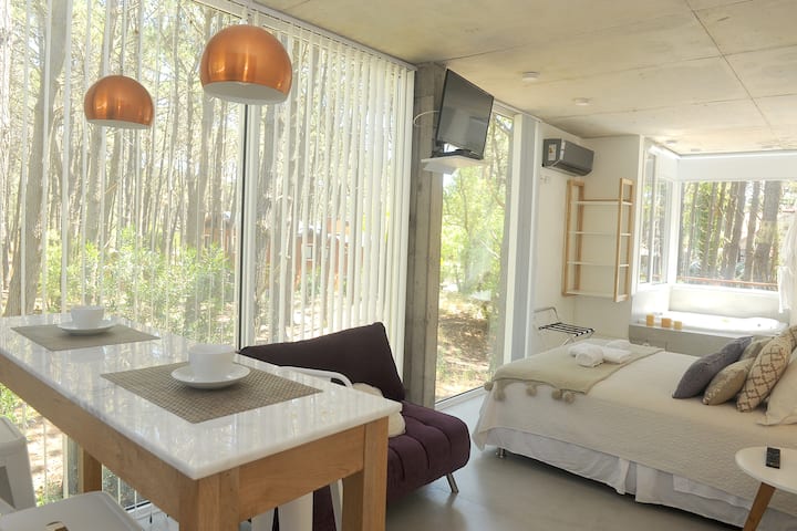 Questo bellissimo posto, di design, moderno ma con tanto calore, ci abbiamo pensato e l'abbiamo fatto con mio marito perché era solo una foresta. Pensando a ogni dettaglio nel suo arredamento, ispirato al bosco e alla spiaggia che ci circonda, la musica, il design , i viaggi, i sapori del luogo" tutto ciò che si aggiunge all'esperienza e al divertimento che entrambi abbiamo nell'attenzione personalizzata dell'ospite rende questo nostro posto nel mondo. Sylvia e Matias sono orgogliosi di poter fornire il miglior servizio e guidarli in modo che conoscano ogni angolo di questo bellissimo posto che è Mar de las Pampas.