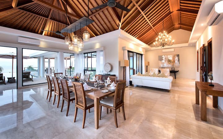 Villa Anahit si trova ai piedi della tenuta di Karang Saujana ed è elevata con una grande terrazza affacciata sul mare, perfetta per feste al tramonto con vista sull'Oceano Indiano. Ci sono quattro camere da letto e tre favolose zone giorno che lo rende un luogo ideale per un grande gruppo o prenotazione ritiro.