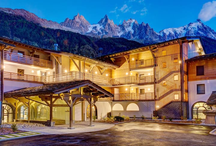 3/4 camere vista Monte Bianco in residenza di lusso e spa