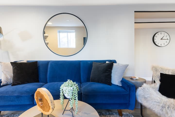 - SI PREGA DI NOTARE! Questo è un appartamento seminterrato situato al piano terra. Le altezze del soffitto sono inferiori in alcune parti dell'unità. C'è un soffitto HVAC nel corridoio che parte dalla zona dei servizi igienici del bagno al corridoio principale, che ha un'altezza inferiore del soffitto e potrebbe essere scomodo per gli ospiti più alti. La camera da letto, il soggiorno, la sala da pranzo, la cucina, la lavanderia e il lavandino del bagno e la zona doccia sono tutti sotto la normale altezza del soffitto. Questa unità è consigliata solo per gli ospiti che sono 5'8" o più brevi.