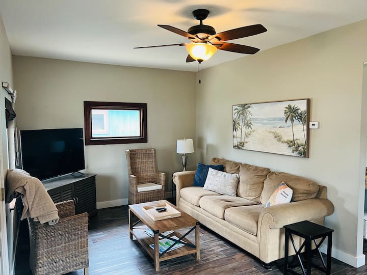Cucina: cucina completamente attrezzata con frigorifero in acciaio inossidabile di dimensioni standard, piano cottura/forno, forno a microonde, macchina per il caffè e tutte le pentole e i piatti di cui avrai bisogno. Goditi i pasti al tavolo da pranzo o all'aperto nel patio.