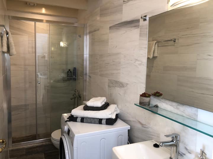Appartamento soleggiato e accogliente, bagno in marmo, spazi esterni ombreggiati