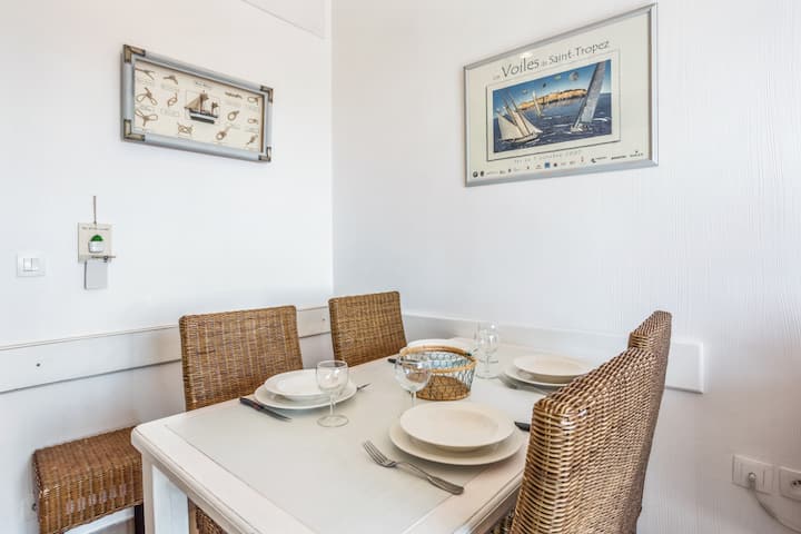 Si può godere di un appartamento ristrutturato e climatizzato, balcone con splendida vista sul Golfo di St-Tropez, accesso alla piscina del residence, numerosi servizi e parcheggio.