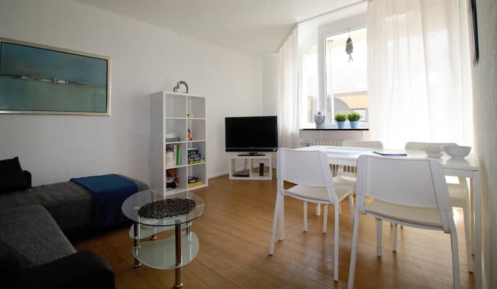 Dopo il trasloco degli inquilini siamo giunti alla decisione di utilizzare gli appartamenti come appartamenti per vacanze. Abbiamo usato aprile 2019 per rinnovare e arredare il primo appartamento. Abbiamo fatto l'arredamento con attenzione ai dettagli, abbiamo preparato tutto come avremmo fatto per noi stessi. Se prenotate l'appartamento, siete pregati di trattare le cose con cura. La casa in cui si trova l'appartamento al 2 ° piano si trova su una strada principale a Oberhausen Sterkrade. Pertanto, non ci sono parcheggi proprio davanti alla porta, ma a tre minuti a piedi. Oh sì, non è rumoroso, poiché le finestre verso la strada sono insonorizzate e le camere da letto sono rivolte all'indietro.