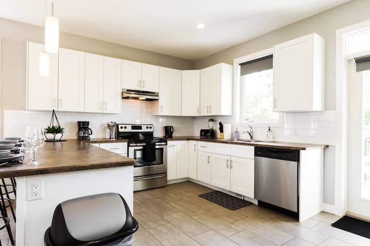 Hai accesso completo e totale alla nostra casa durante il tuo soggiorno, incluso il garage situato sul lato posteriore (ovest) della casa. Sentiti libero di riprodurre in streaming Netflix quanto vuoi, prepara tutto ciò che puoi sognare nella cucina del nostro chef completamente rifornito, o tuffati in auto/prendi un Uber fino a Mayfield Common, uno dei quartieri dello shopping più vivaci di tutta Edmonton!