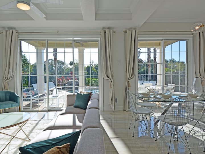 Il perfetto equilibrio tra DESIGN ELEGANTE, COMFORT DI LUSSO e INTRATTENIMENTO SENZA FINE, situato in posizione strategica direttamente sul campo da golf Jack Nicklaus PGA nello splendido Reunion Resort di 9 chilometri quadrati. Avrai a disposizione una piscina privata con cascata, una spa con effetto cascata, una sala giochi con cinema e biliardo a tema STAR WARS, un'incredibile sala giochi per bambini a tema MARVEL con scivolo tubolare integrato e letti a castello, una Xbox e una PlayStation, a pochi minuti dalla Disney.