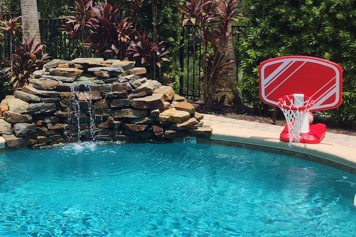 Incredibile piscina con cascata e spa riscaldata con acqua traboccante (riscaldamento piscina/spa disponibile a pagamento)