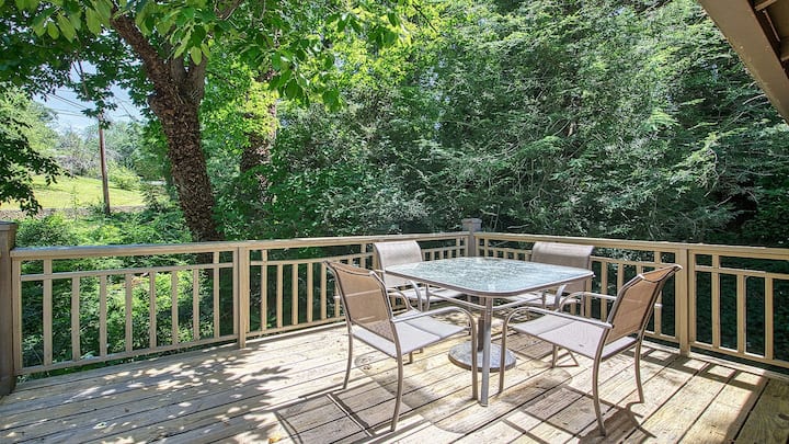 Oltre a tutto ciò che questa incantevole casa vacanze offre, il Car truth Cottage si trova in una posizione eccezionale. Car truth Cottage si trova a pochi passi dal Lake Junaluska Conference Center, il che lo rende l'alloggio perfetto per i partecipanti alla conferenza. Raggiungi a piedi le strutture per conferenze o porta i più piccoli al parco giochi Lake Junaluska. Fai una piacevole passeggiata lungo il sentiero lastricato che circonda il lago mentre ti godi gli edifici storici e le splendide viste sulle montagne che circondano l'intera zona. Il percorso pedonale di 4 km ha diversi gazebo e panchine dove puoi fermarti e riposarti mentre ti godi la passeggiata intorno al lago. Se preferisci, puoi ridurre la durata della tua passeggiata a 4 km attraversando il ponte pedonale sopra la diga. Qualunque sia il modo in cui scegli di andare, non perderti la "Rose Walk", che include più di 200 tè ibridi, grandiflora e rose floribunda.