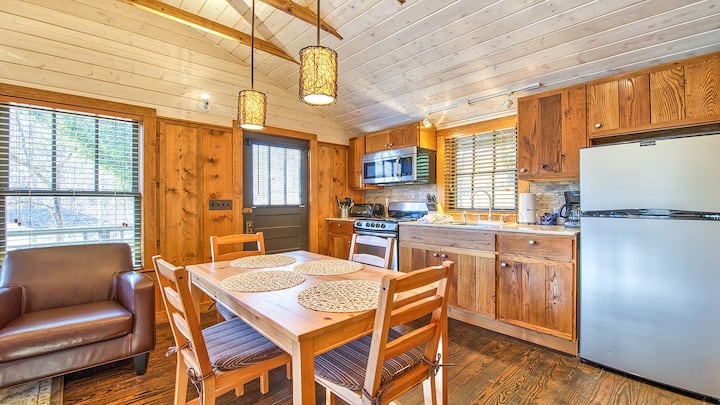 Car truth Cottage è un monolocale ristrutturato di recente, situato tra gli alberi in un quartiere incantevole. Goditi la privacy che offre il Car truth Cottage, arroccato sull'originale garage in pietra naturale. Sebbene Carruth Cottage sia un monolocale, lo troverai sorprendentemente spazioso, con un nuovo e spazioso bagno completo, un letto queen-size e un letto a grandezza naturale che offre abbastanza spazio per tutti. Gli invitanti nuovi armadietti della cucina sono realizzati con castagni di vermi recuperati che danno alla casa un'atmosfera calda mentre l'ampio bancone, gli utensili ben riforniti, le pentole e le stoviglie mantengono felici anche i cuochi più russi. Questo grazioso cottage offre comfort accoglienti e fascino montano senza sacrificare i comfort moderni. Goditi la cena all'aperto sul tavolo del patio, completo di ombrellone. Dopo una giornata intensa di visite turistiche o a una conferenza locale, la terrazza è il luogo perfetto per rilassarsi e staccare la spina nella tranquillità dell'ambiente circostante e sotto la grande riva di alberi all'ombra. Immagina di sederti fuori la mattina presto sorseggiando il tuo caffè e crogiolandoti nella serenità. Carruth Cottage è una casa monolocale premium in affitto per le vacanze che offre relax e comfort, un bellissimo quartiere boscoso e tranquillo, riscaldamento centralizzato/aria condizionata, TV via cavo HD, WiFi, strade asfaltate e accesso tutto l'anno.