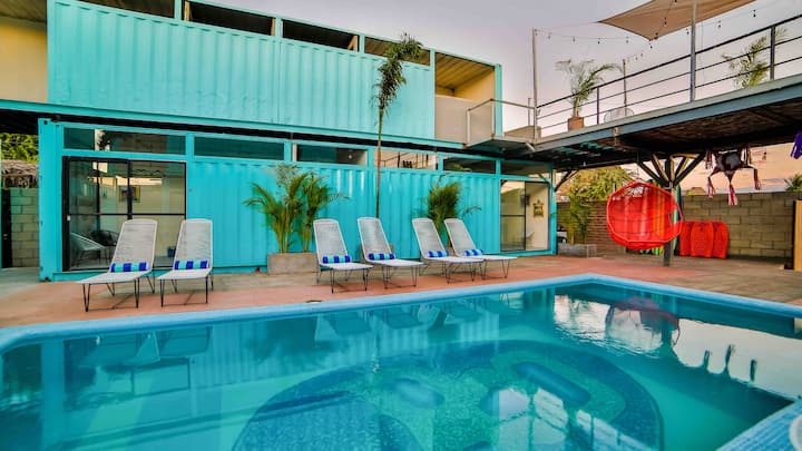 ONDA Surf Hotel si è concentrata sulla creazione di un'esperienza di viaggio autentica ed ecosostenibile nella posizione esotica di Punta De Mita, in Messico. In questo rustico villaggio di surf e pescatori, l'ONDA Surf Hotel dispone di container per le spedizioni completamente rifiniti per comfort, stile, sostenibilità e un'atmosfera rilassata.